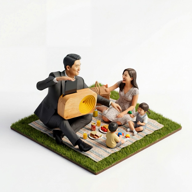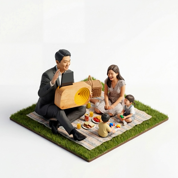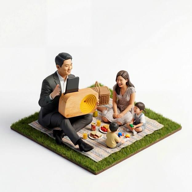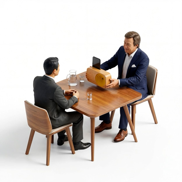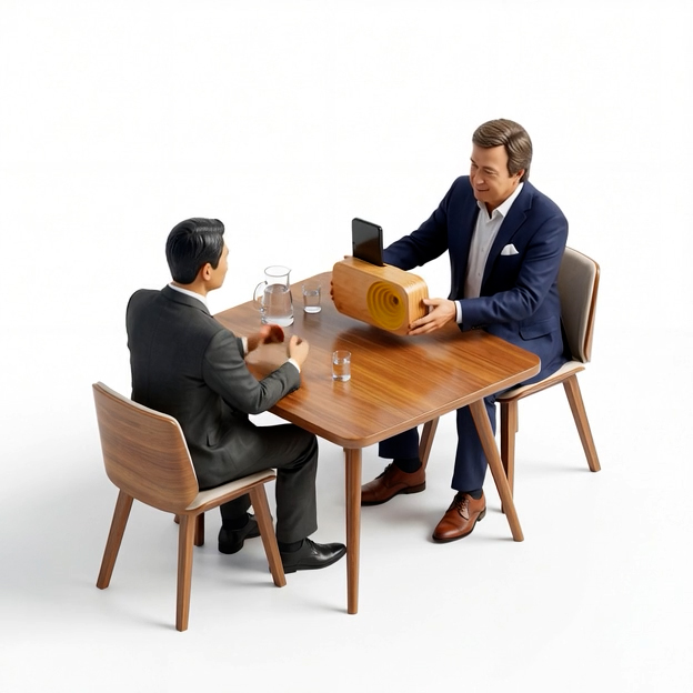 Ahşap ses sistemi, müşterinin ofisinde veya evinde günlük kullanıma giriyor. Her kullandığında: